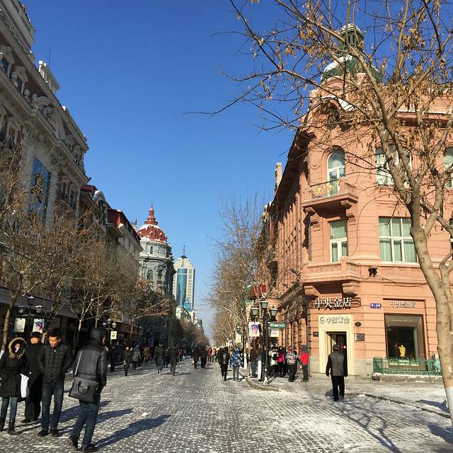 在先锋路和华山北路交界处,打车时可以和司机师傅这样讲,否则他们不清楚具体的位置。酒店距离中央大街打车只需14元就能到,不过在哈尔滨打车通常都是拼车,无论你是在马路上直接拦车还是用打车软件叫车,司机都会问你几个人,然后顺路的才会一起拉上,否则就会拒载,当然你付钱时只需要付你应该交的那部分钱即可,刚到这边的我很是不习惯,可是没有办法,天太冷,如果不拼车就要一直冻在马路上:(