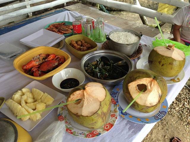 这就是我们中午BBQ的地方,当地人盖的小棚子,代加工食物,不过说实在小黑烧菜的水平第二次菲律宾了,实在不敢恭维,烧海鲜跟中国人比简直是天上地下。不过还好能吃到最新鲜的也还好啦。。。