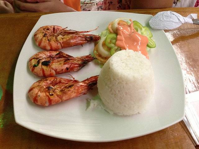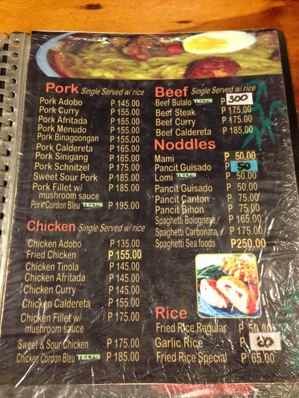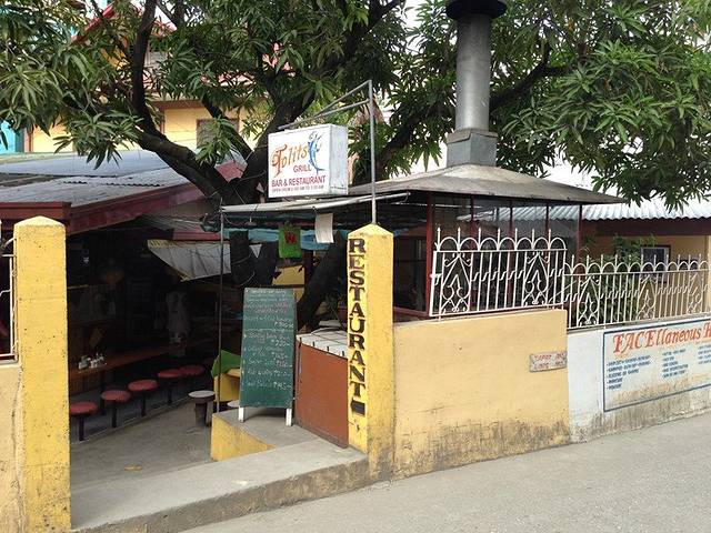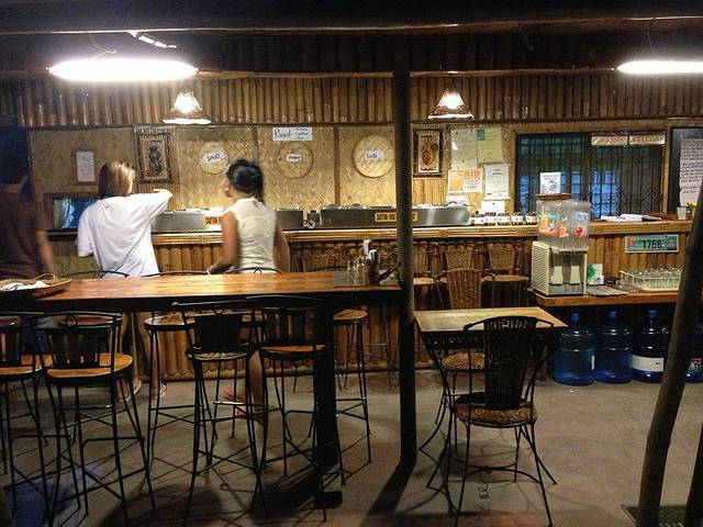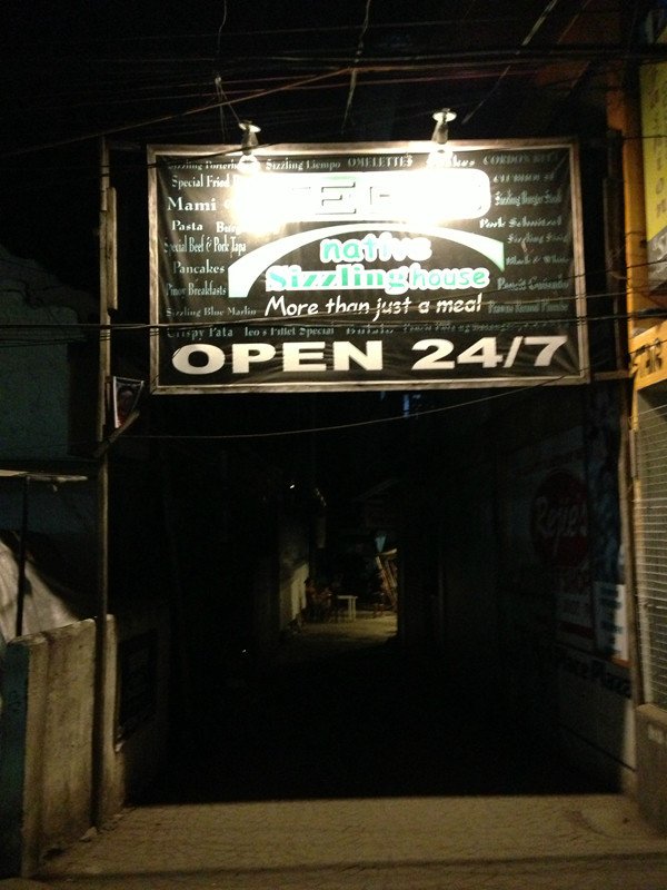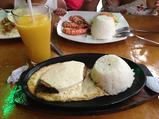 3.sabang镇上的rejie's meat shop里的牛骨头汤:在sabang镇上,过了sabang disco右转,往治安亭那里走,有两家西联汇款(west union),在第二家西联汇款店的位置,左手边有一个巷子,进去5m就是。巷子的墙上有rejie's meat shop的logo,菜单上beef下面第一项就是牛骨汤,好像是写的balulo吧,具体的搞不清楚,发音大概就是“巴露鲁”,小份145P,大份300P,强烈建议吃货们来大份。(这个是这次我认为最好吃的食物之一了,哈哈)