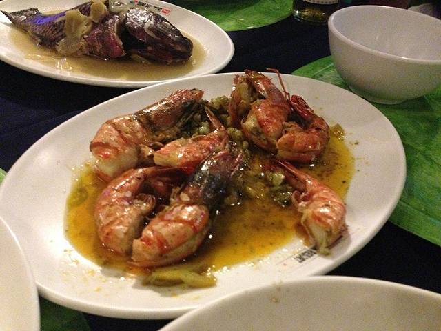 买了四只大虾,还有鱼,还有蔬菜才花了二百多P,还不够饭馆里一份定餐,好便宜啊~~