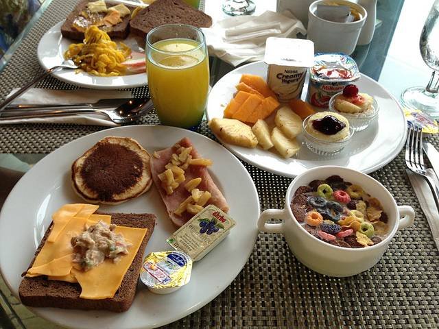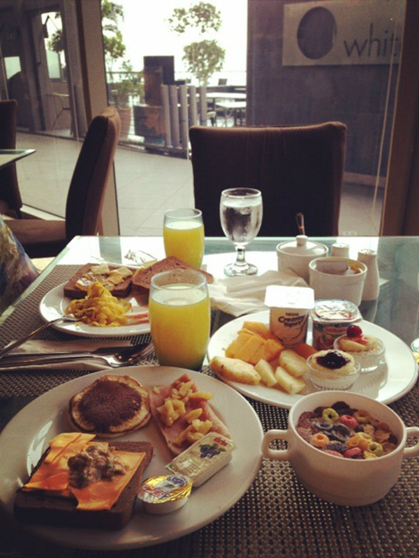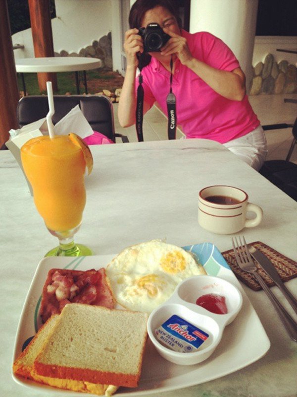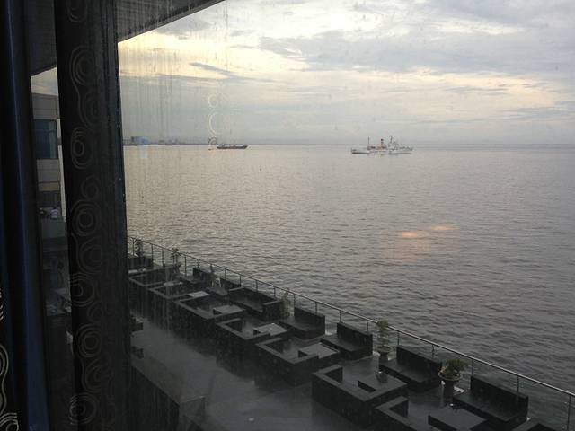 虽然窗外下着小雨,但坐在这里看海吃早餐,好舒服的感觉~~~~
