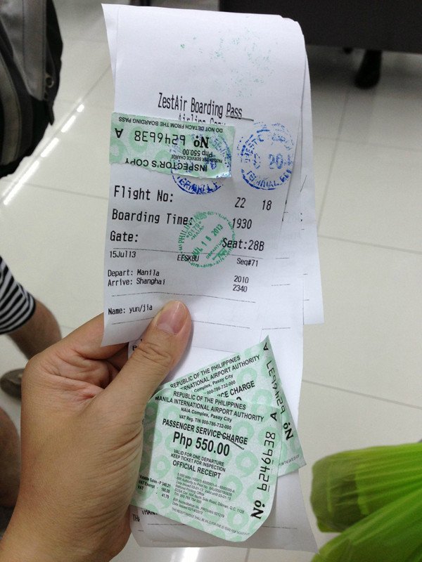那个马尼拉到达的机场真是破的跟连火车站还小,出发里面也没有水和食物,都是马拉旧机场4号航站楼,记得跟司机说,他们都知道,马尼拉机场离境时要每假550P离境机场税,记得留好零钱,不要全花光了,