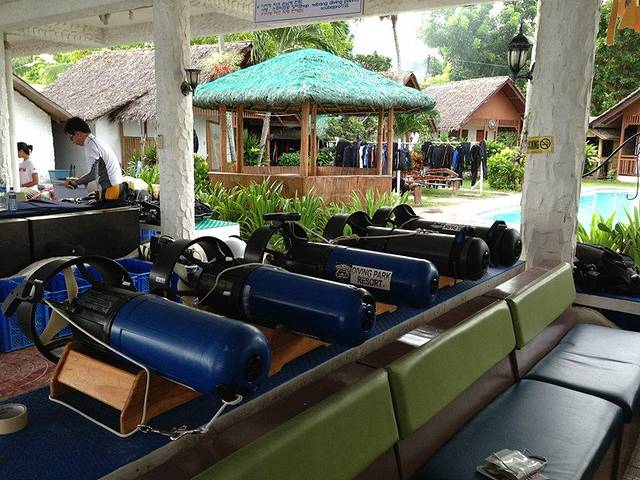 我们旁边一排全是潜水店和旅馆。本来是找这家朋友介绍的教练,结果没人,让我们去旁边最大的DIVING park,