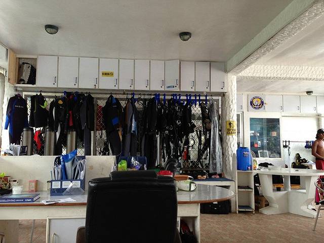 这家应该算是这小片沙滩最大的一家,好多装备,好多帅哥美女教练。忘了要名片了,大家网上搜下应该搜的到。我是有证OW,所以只是租装备跟潜导下潜就行了。一潜1400,两潜2800,