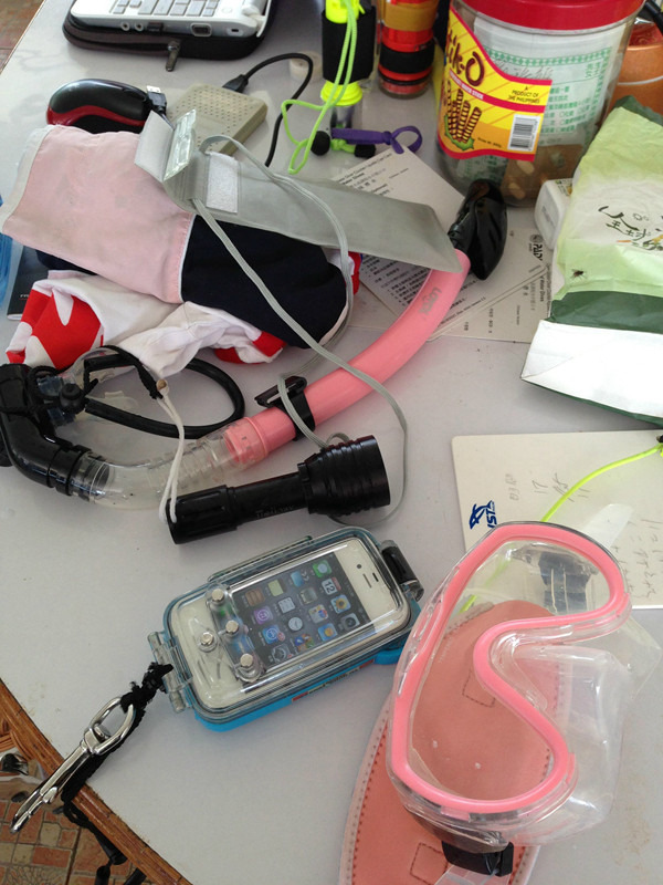 头一晚上找了这里的教练问好如果想潜第二天一早七点半到,让我吃个大早,谁知道教练有事等到了快九点,还好这里中文教练很好,基本全国各地的潜客都能看到,全是中国话,听着好亲切,人都很亲切,忘了头一次问租潜水相机的事,早上一来没有相机用了,有好心的台湾教练大邓和北京大妞熙借我自己的爱疯加潜水壳拍了一些小片子,哎下次一定要自己带,