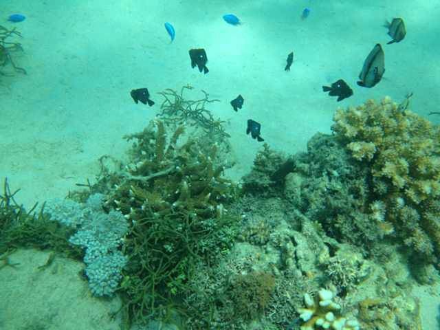 把食物放到那里又带我们到一个无人海滩浮潜。麻麻的感受是附近的海里浮潜游泳好像在水族箱里,好多珊瑚,鱼,海胆,海星~~~