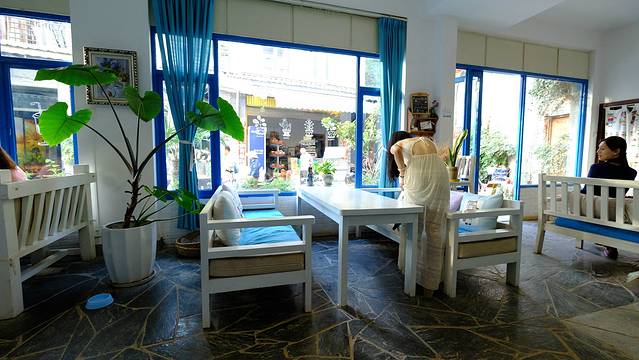 双廊除了客栈以外还有好多很有特色的小店,比如这家anne咖啡馆就是以猫为卖点,其实店里就三只猫,一水儿的中华田园猫,我们家楼下一群一群的,和那些养名猫的咖啡馆实在没法比,可是没辙,某人就喜欢猫猫狗狗这些小动物,誓死要进去坐坐,来这儿的客人全是小姑娘,就我一个大老爷们儿坐里边那叫一个不自在...