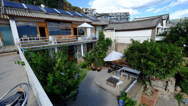 双廊真是名符其实的大工地,天堂一般的客栈隔壁通常就是正在施工暴土狼烟的工地,脏乱吵闹,蓝帆地中海人少的一个重要原因就是工地把它的门都挡住了。。。