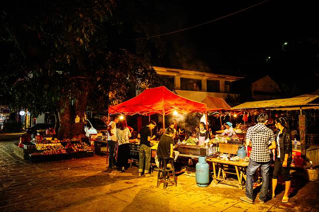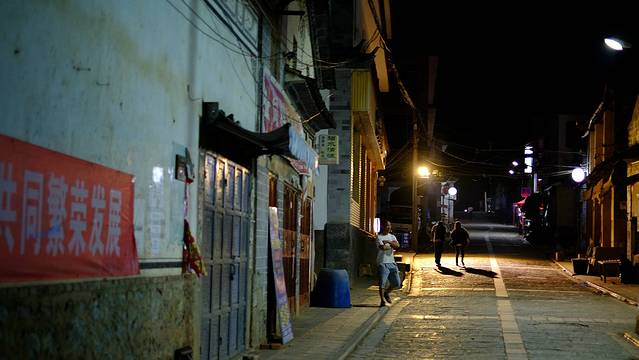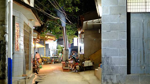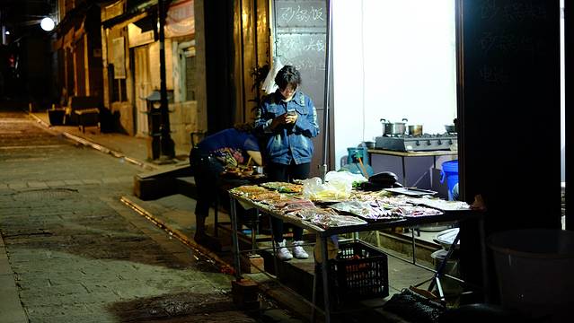 双廊果然比喜洲繁华得多,古镇里零星散落着几个小夜市,能吃的东西基本上全是烧烤,味道相当不怎么样,感觉食材也不太新鲜,全靠超级辣的辣椒面遮住即将变质的味道。倒是当地的摊主们都挺热情,收费也还挺公道的。