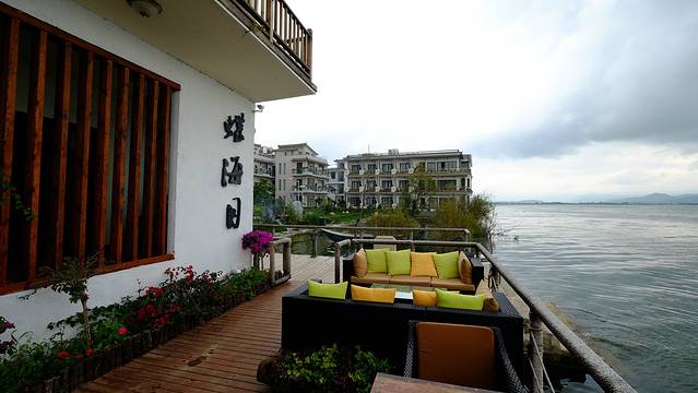 喜洲的客栈比较少,而且互相不挨着,我们住的谍海月海景度假酒店算是这边价位比较高的了,豪华海景套房旺季一千五百多一天,看名字也能看出来,这是酒店不是客栈,从硬件看还真有点儿五星级的感觉了,但管理方式还是比较偏客栈风格,规模也不大,缺点是只有早餐,而且周围没餐馆,交通也不方便,优点是入住环境和周边环境比双廊各种客栈都强了太多。