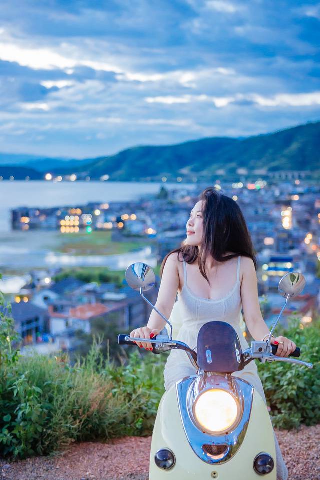 看完猫天色见晚,骑着我们的小电动车去双廊旁边的小山坡上看夕阳,这儿能看到双廊全貌,根本没必要爬苍山了
