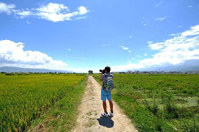 最后一天回大理市区的路上顺道去逛逛喜洲古城,古城的景色主打稻田和老房子,其实类似的景色洱海周边多得是,完全没必要专门去一趟喜洲