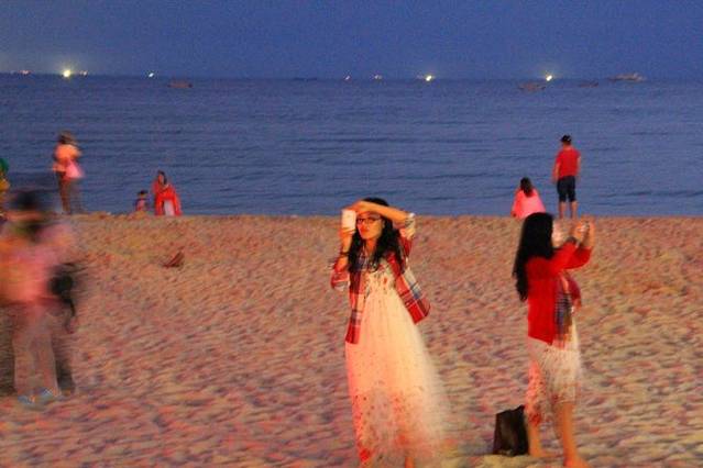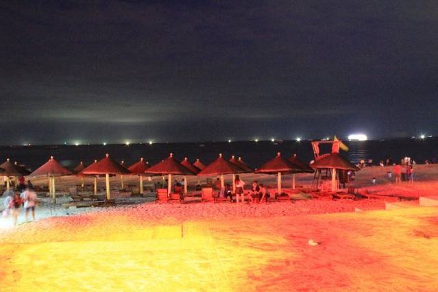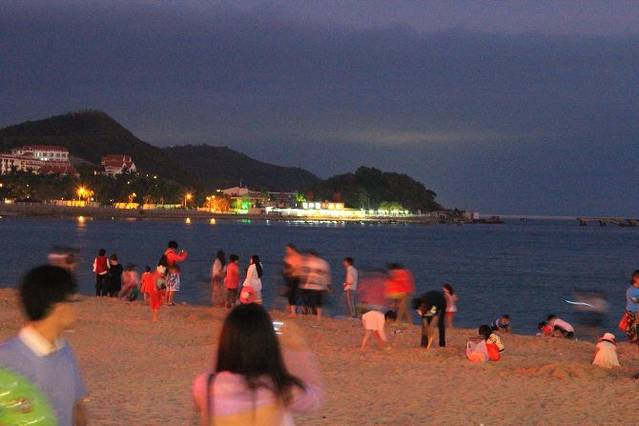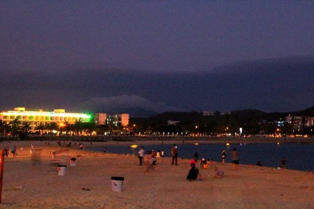 迷人的灯光,细软的沙滩,平静的海面,流动的人群,美哉美哉。