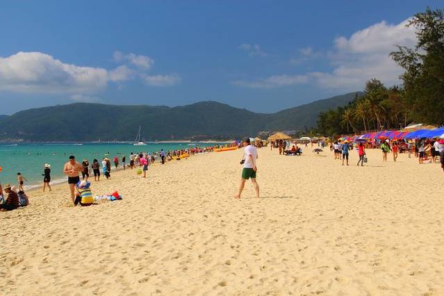 15元的牛肉拉面虽然牛肉少得可怜,但总算味道还可以,所以接下来的几天的早餐就全在这里搞定啦,完事直接打的到亚龙湾,200元你爱去不去,虽然路边就是公交车站,无奈每辆经过的车都是严重超载你根本就上不去,带着大宝小宝还是别受这罪了,亚龙湾走起,真是碧海蓝天,洁白的沙踩的很舒服,绵软细腻的沙滩绵延伸展约8公里,海滩长度约是美国夏威夷的3倍。享有“天下第一湾”的美誉。