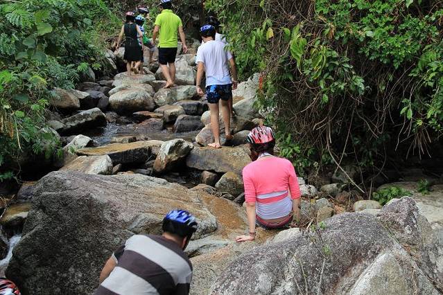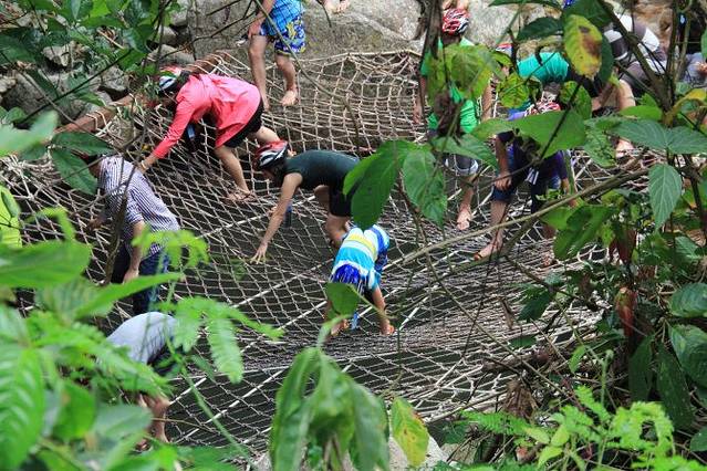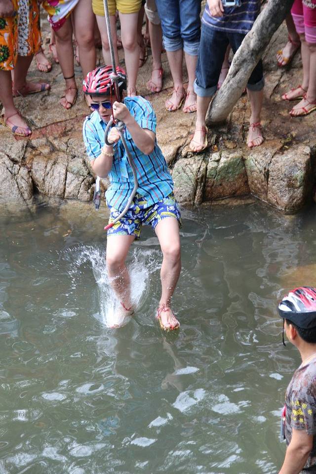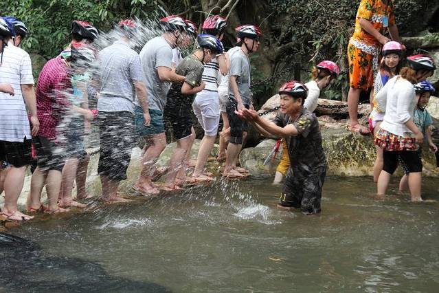 导游在买票,我抓拍点小细节,进了景区坐电瓶车到雨林的梦幻谷玩踏瀑戏水,这是导游在车上花了半小时的游说成果,戏水的朋友们另掏100元一人。