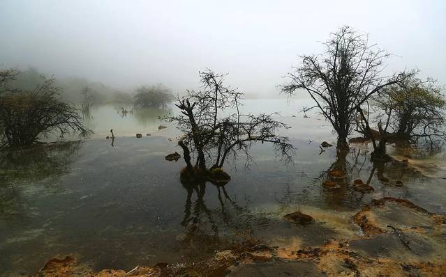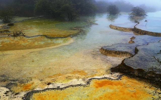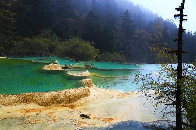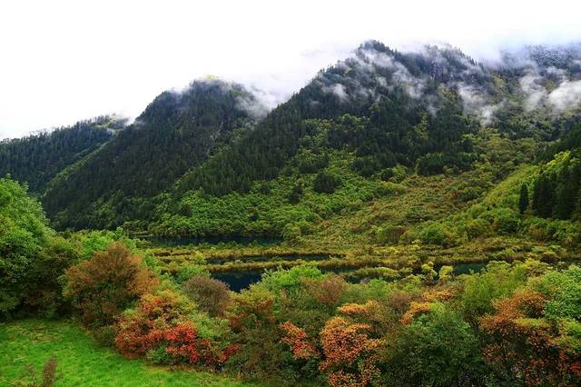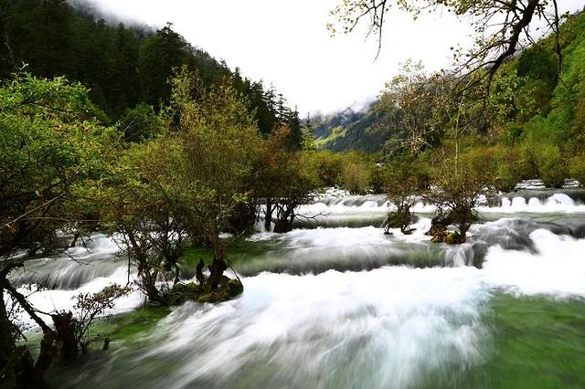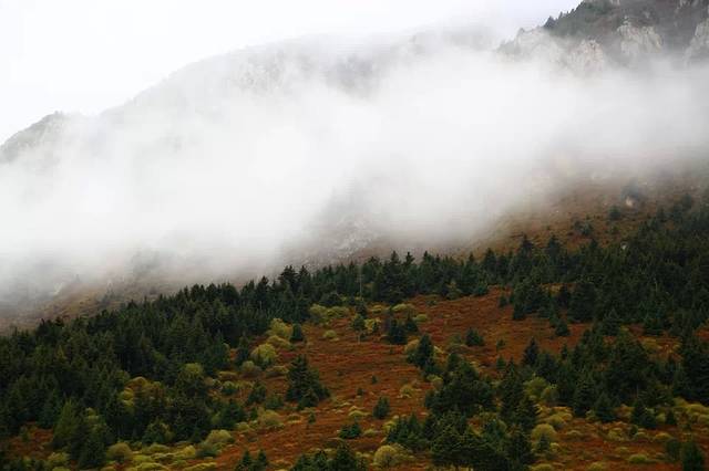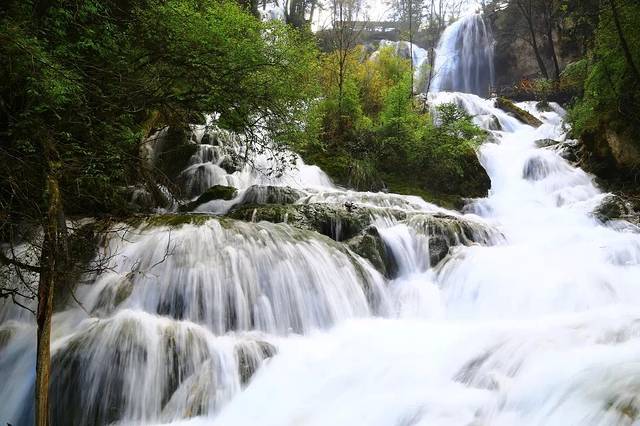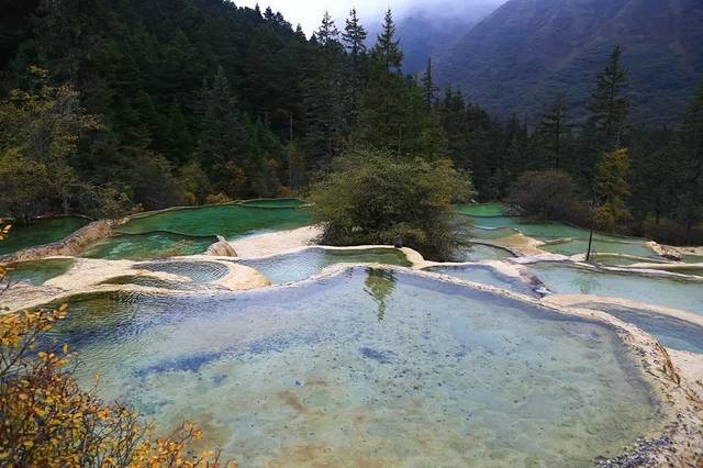 早上9点到的毕棚沟第一个景点云雾缭绕,到下午经过的时候没有云雾就没有那么美了。