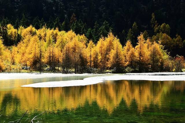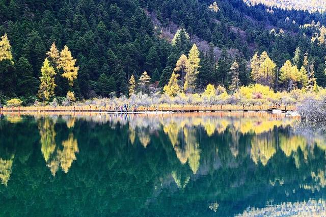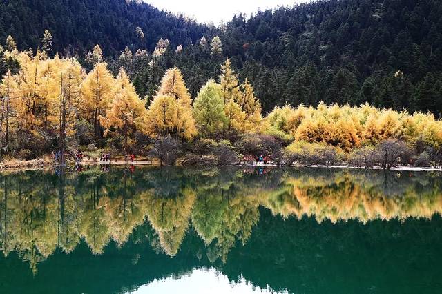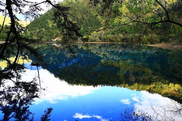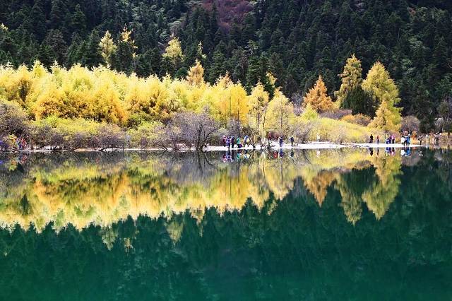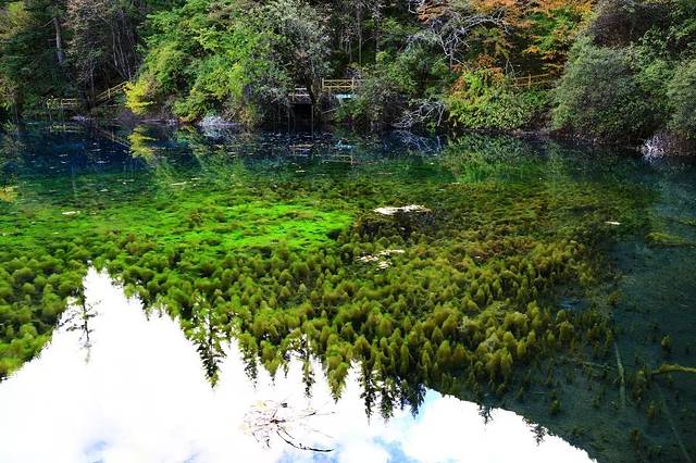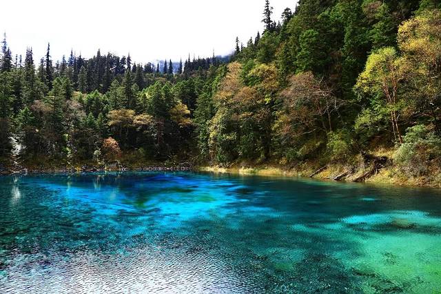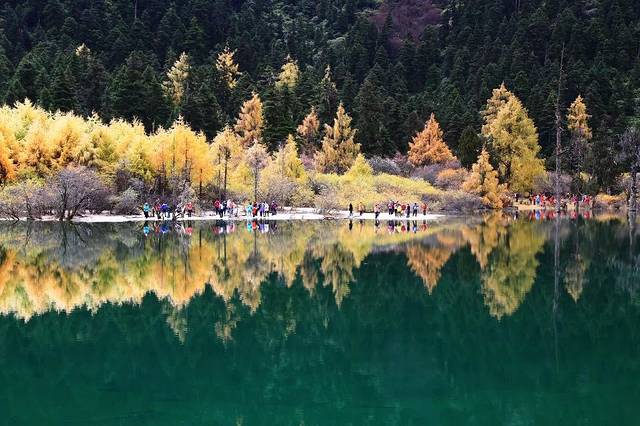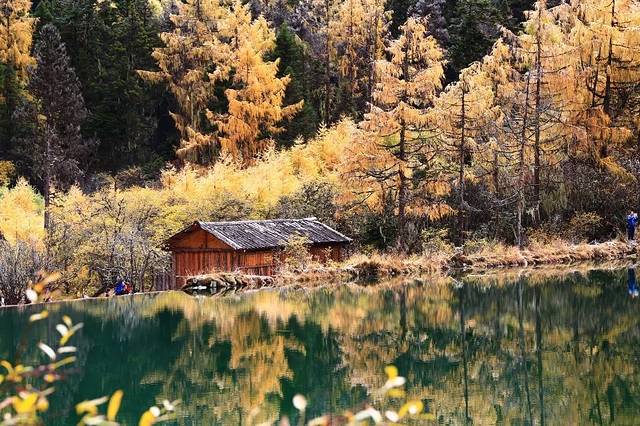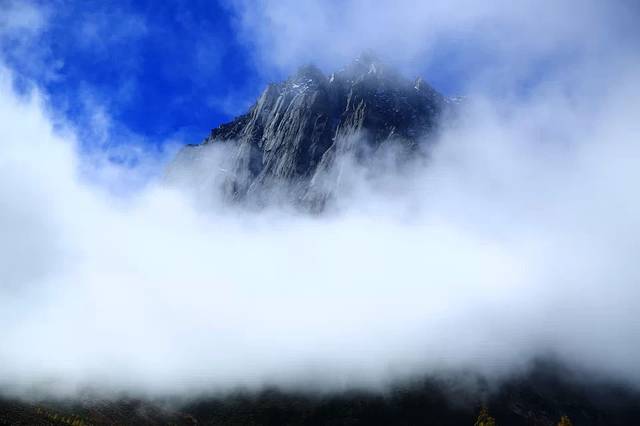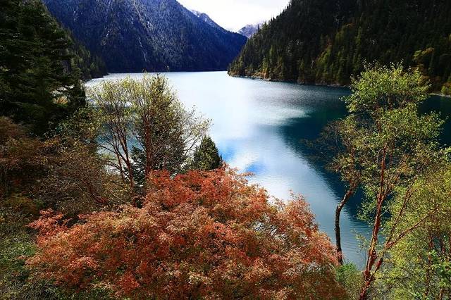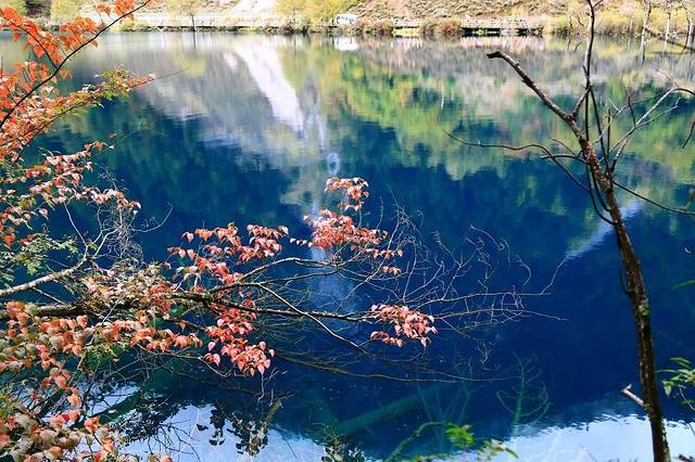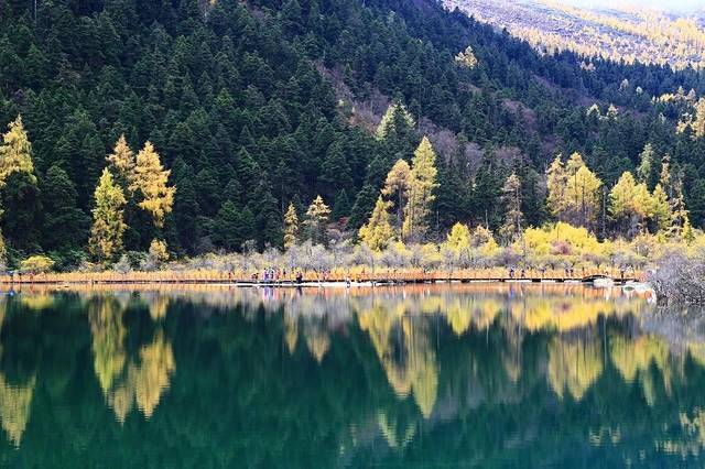 秋换下了毕棚沟夏的绿装,穿上了五彩斑斓黄底的花衣裳。绿成了点缀,红的枫,黄的杉,湛蓝的天空,云雾缭绕分不清是云还是雾。幸运能看到四姑娘雪山的真容,雪山的雪水和泉水如流淌的歌谣悠扬而去,婴儿眼眸般清澈的海子,像镜子倒影着这童话般梦幻的美丽,至身在这水彩画中,此刻我醉了,飘飘然。。。。。。
