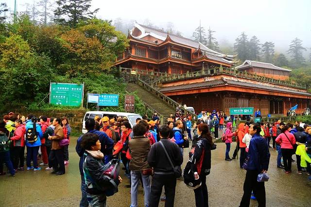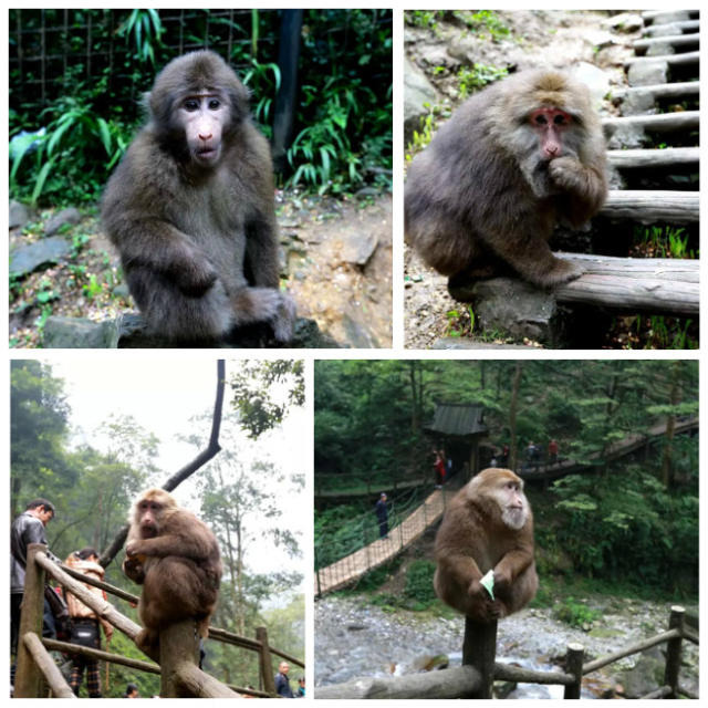 下金顶又开了一个多小时的车到吃中午饭的地方,下午从雷洞坪停车场乘观光车到万年寺停车场,乘索道(上行65元)参观普贤菩萨道场万年寺,我们几个没有进去,稍做休闲后自行下山游览,一路上植被茂盛景色倒是一般,没有怎么拍照。清音阁地处峨眉上山下山的中枢,往左边是峨眉山生态猴区,位于峨眉山清音阁、一线天至洪椿坪之间,为一段狭长的幽谷,占地25公顷,是目前我国最大的自然生态猴保护区。