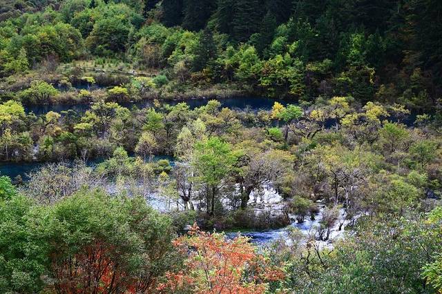 九寨沟国家级自然保护区位于四川省阿坝藏族羌族自治州九寨沟县境内,是中国第一个以保护自然风景为主要目的的自然保护区,同时,也是中国著名风景名胜区和全国文明风景旅游区示范点。距离成都市400多km,是一条纵深50余km的山沟谷地,大部分为森林所覆盖。因沟内有树正、荷叶、则查洼等九个藏族村寨坐落在这片高山湖泊群中而得名。