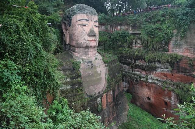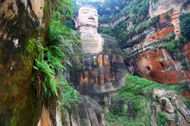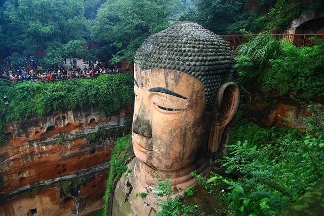 乘车经成乐高速公路到达历史文化名城古嘉州—乐山(全程128公里,车程大约 2.5小时左右),乐山大佛地处四川省乐山市东,岷江、青衣江、大渡河三江汇流处的凌云山上,“佛是一座山,山是一尊佛”。乐山大佛,又名凌云大佛,大佛为弥勒佛坐像,通高71米,是中国最大的一尊摩崖石刻造像。乐山大佛开凿于唐代开元元年(713年),完成于贞元十九年(803年),历时约九十年。