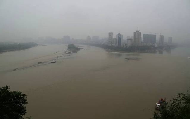 天气灰蒙蒙的拍的照片也不好看,岷江、青衣江、大渡河三江汇流: