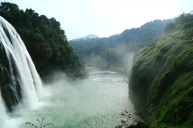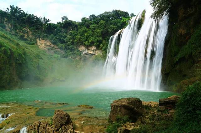 黄果树风景区是国家AAAAA风景区,位于贵州省西南距省会贵阳市128公里,距安顺市45公里,景区内以黄果树大瀑布(高77.8米,宽101.0米)为中心,分布着雄、奇、险、秀风格各异的大小18个瀑布,形成一个庞大的瀑布“家族”,被大世界基尼斯总部评为世界上最大的瀑布群,是中国最大的瀑布,列入世界基尼斯记录。景区规划面积163平方公里,平均海拔约900米,年平均温度为16摄氏度,景区内空气清新,每立方厘米空气含负氧离子两万八千个以上,素有“天然大氧吧”之称。黄果树瀑布景区主要是由陡坡塘瀑布,天星桥景区和黄果树瀑布三个景区组成。