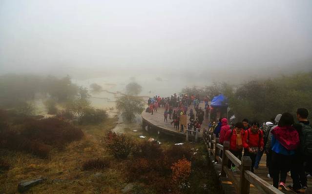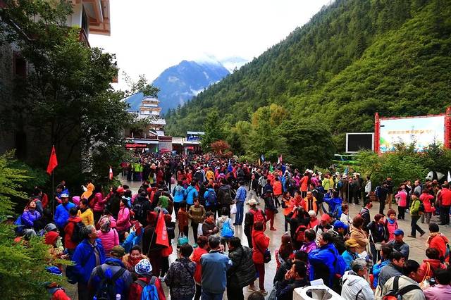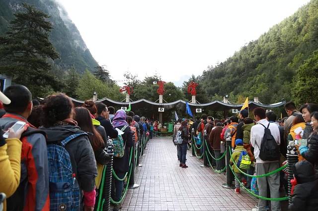 来黄龙游玩的游客真不少,大家都想错峰旅游,没有想到都赶到一块了,景区的缆车排长队,导游说黄龙游览时间大概3个小时6点集合上车。