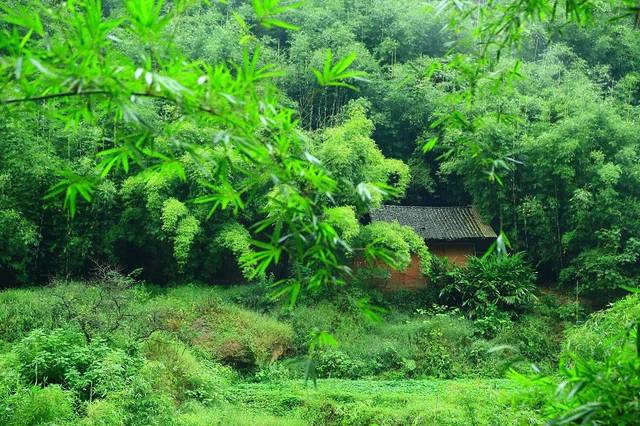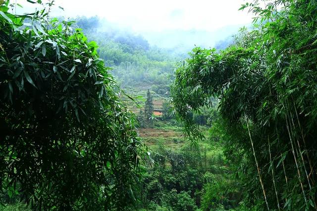 景区门口到景区还有3公里这样,坐电瓶车要15元,我们选择步行。路两边都是竹子,景区植被茂盛,空气很好:
