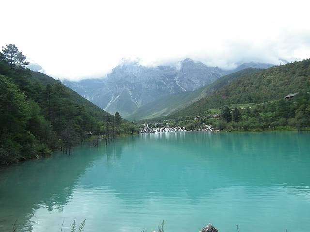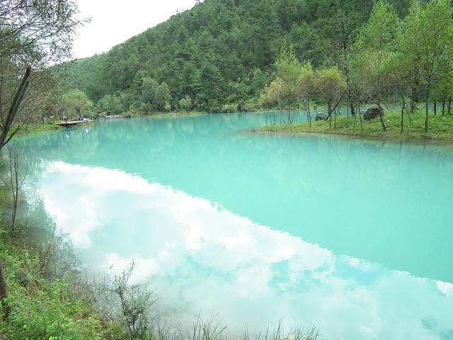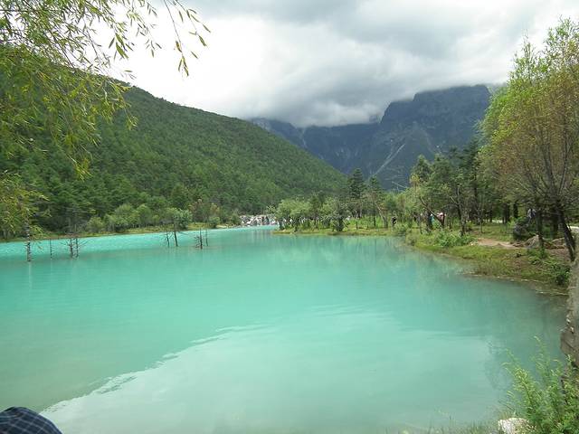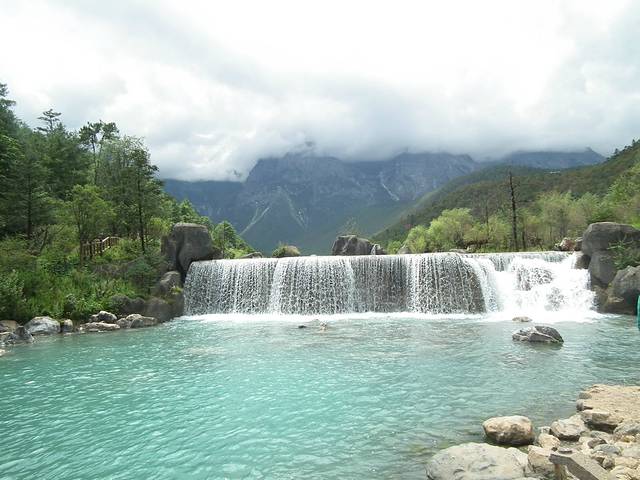 吃过饭,下午去游览蓝月谷,还没下车大家就不约而同的开始尖叫了,因为我们透过车窗看到了一片蓝汪汪、绿油油的湖泊,这不是人工游泳池而是一片天然的湖泊,以前只有在电视上才见过的。一下车导游就hold不住队形了,每个人都争先恐后的咔嚓……其实这片水域是因为矿石中含有大量铜元素,造就了巧夺天工的自然奇观。我觉得自然界应该有不少类似的现象,只不过对于生活在城市中的大多数人来说真的是罕见碧蓝的湖水和瀑布,物以稀为贵啊。今天过的真快,一点都不觉得累。