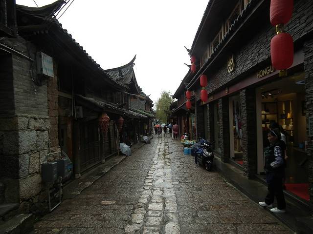 一早起来赶火车,大理到丽江不过2个小时,很快就到了。但是丽江火车站在郊区,乘车到古城要好久,想到束河还要转车,按客栈老板提供的乘车线路终于到了束河,正巧碰上下雨并且越来越大,客栈老板出来迎接,但是由于我路况不熟,找了好半天才碰面,两人都被淋湿了,回到客栈基本成落汤鸡。雨一直下,气氛不算融洽,我最担心的是明天的玉龙雪山一日游能否顺利,不过俗话说天有不测风云,既来之则安之,稍微安顿一下便冒雨开始游束河,大约半个小时后雨居然停了。束河有种小家碧玉般的隽秀,几条小溪穿过古镇,水流清澈透明,漫步其中有种江南小桥流水人家的感觉。