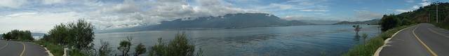 早起租自行车准备环洱海2日游,之前在网上查过有家租车挺便宜的叫“顺风租车行”,按图索骥,在东门(洱海门)旁边找到了它,果然有10元/天的山地车(其他家基本都是20元/天),租车一般押身份证,由于住宿需要身份证所以就交了300元的押金。选了辆带后架的车,向老板借了条绑带把背包绑在后架上,绑带很重要,因为如果背包骑车的话会很热的。租车尽量早点,因为有后架的车是有限的,去晚了就租不着了。骑上车试了下车况,我发现一个问题,就是车座比较硬硌屁股,但是所有的车都是这样的车座没得换,只能这样上路了。从东门出发直奔才村环海西路(百度地图查不到这条小路,而且有些攻略写的是走大丽路,其实环海观景走环海西路是最好的选择)今天天气真的非常给力,一直多云,口罩手套什么的都没用上。一路走走停停游人很多,早上9:00出发的,都下午1点了还没看见喜洲,正郁闷呢突然发现已经到了蝴蝶泉了,原来喜洲已经过了!后来才知道环海西路是条沿海小路,不穿过喜洲古镇,而且路标也不是很明显,所以不知不觉已经走过了,没办法只能简单吃点东西1:30继续赶路,半个小时后到了环海东路,看到一块牌子“距离双廊14km”,这时候浑身上下最疼的不是腿,也不是腰,而是屁股。尝试调高了车座居然还真有效,酸疼稍稍缓解了一点。下午体力明显下降,这14km骑了一个半小时,3:30终于到了双廊。客栈位置有点小远,要穿过大半个双廊,还堵车。连骑带推走了40分钟才找到客栈,这时已经累P了。休息了一下出去吃晚餐,双廊小吃都挺贵的,不过处处可观海景,买份吃的打包到海边边吃边看景也是件很惬意的事情。今天很辛苦,晚上不到9点就回去睡觉了,按照前辈们的经验睡前用热毛巾敷一下腿和腰,第二天早上起来真的一点都不疼。