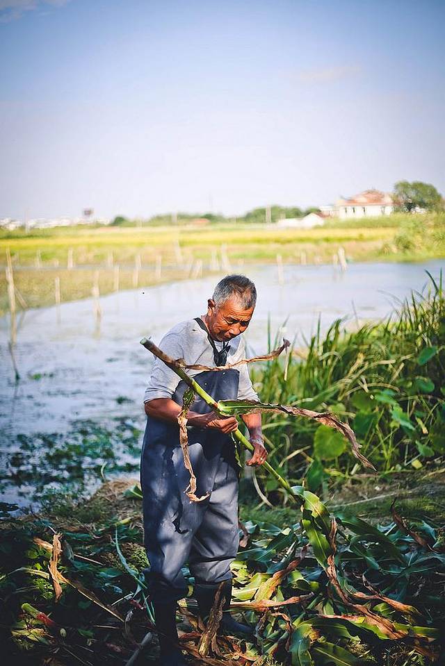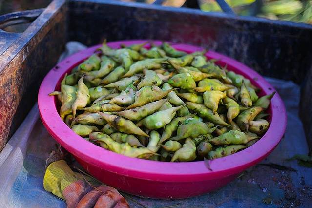 大爷车里还装着新鲜采集的菱角~这是我小时候的一种零食~新鲜的菱角可以直接掰开吃,白白的菱角肉很清爽甘甜~