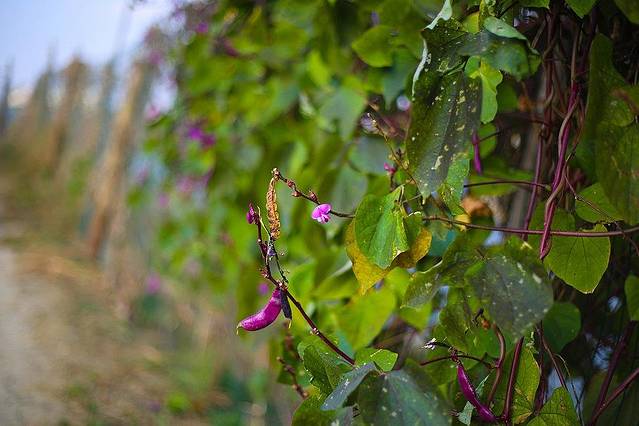 沿途色彩斑斓的扁豆花,也是一道风景。
