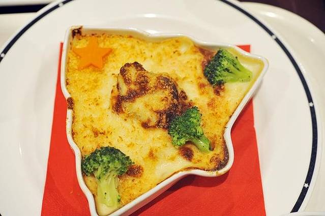 海鲜焗饭,中间一个大扇贝,圣诞树造型滴。