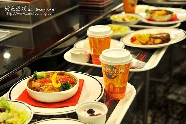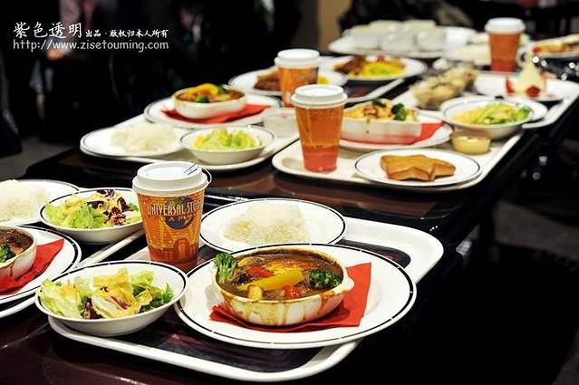 我们因为下了飞机直接到这里,都还没有吃饭,夜晚又比较冷,所以决定先找家餐厅用餐。公园园区很大,我们在主街上找了一家餐厅,人很多,排了长长的队伍。但点餐速度还是蛮快的,很有效率。餐厅里的食物也很应景,餐点也都是圣诞为主题的。