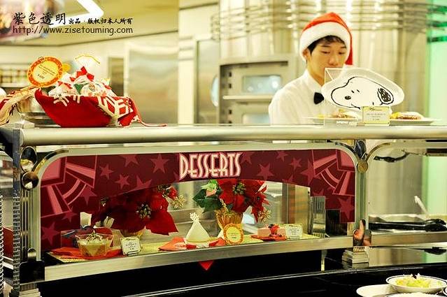 这里的售卖方式跟北京宜家的售餐方式有点类似,拿着托盘排队选购套餐,这个展柜展示的是各种圣诞款小甜品。
