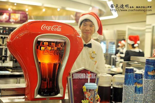 硕大的coca-cola饮料机,还是带冰块效果呢。店员全部是圣诞装束,节日气氛超浓。