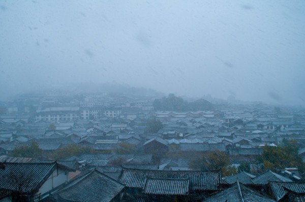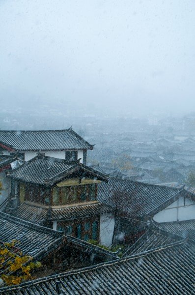 刚到了丽江,在童话客栈古今店主了一夜,第二天丽江就下雪了