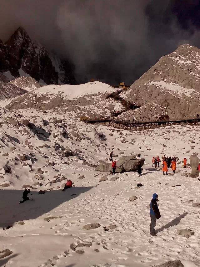 上了玉龙雪山,真的是又冷又美。。。。雪山上太冷了