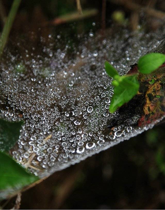 就连普通的蜘蛛网都变得有灵气起来,好像一块镶满碎钻的丝绸帕子。