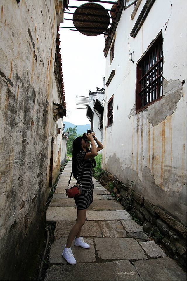 依山而建的徽派建筑星罗棋布但井然有序,家家户户凿窗采光、支架晒物。