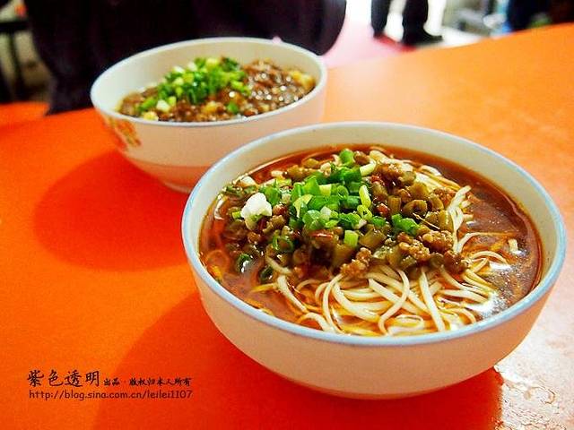 最终我俩选了一家吃面的,我吃的是豌豆小面,她吃的是杂酱面。这里的面非常好吃,特别有味,我给吃个精光。