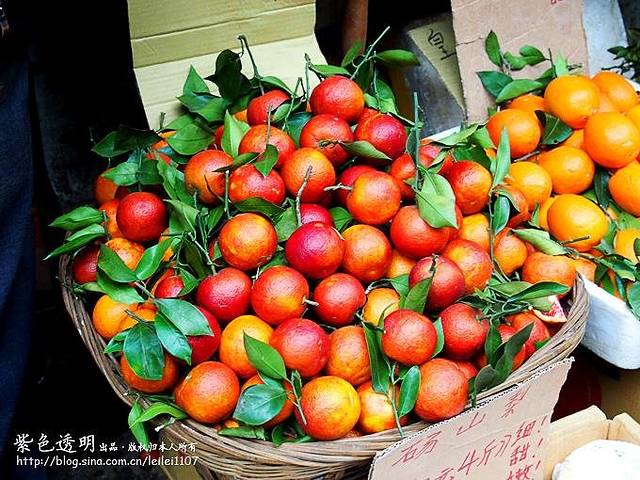 血橙,里面是红色的,但味道跟橙子差不多,倒是拿来做甜品装饰会比较好看。