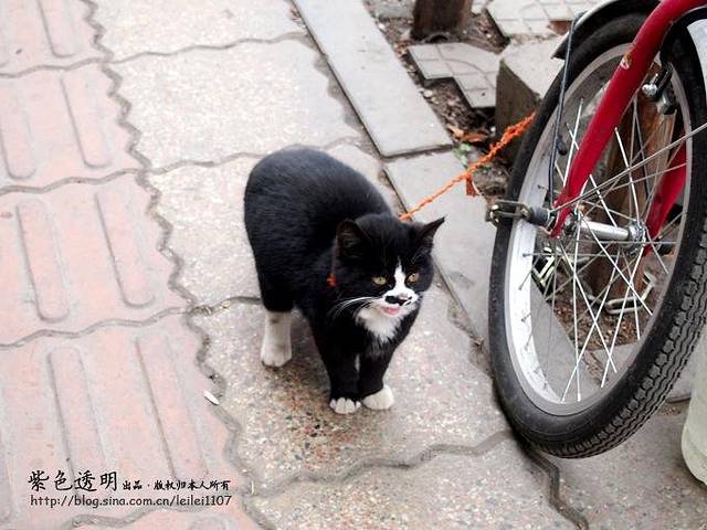 餐厅门口会栓一直小猫,为了防老鼠。这只小猫脾气可大了,看我过去拍它,眼神犀利,还叫个不停。