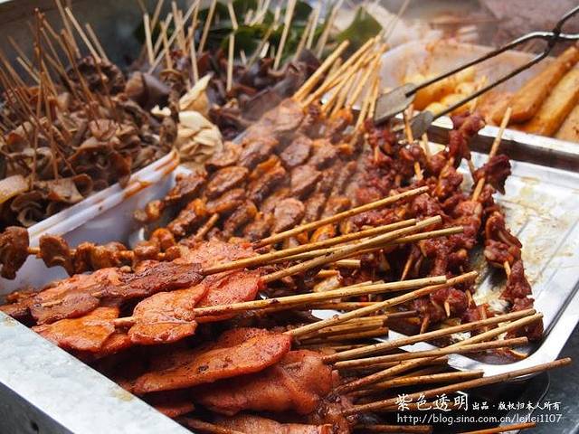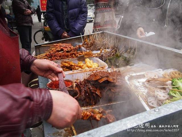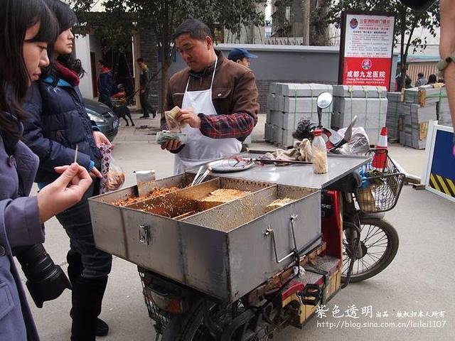 还遇到了推小车卖串串的,据说是成都比较老的售卖形式。不过并不推荐吃这个哈,卫生还是挺堪忧的。尤其是街边回收再利用的竹签和久煮的汤底。