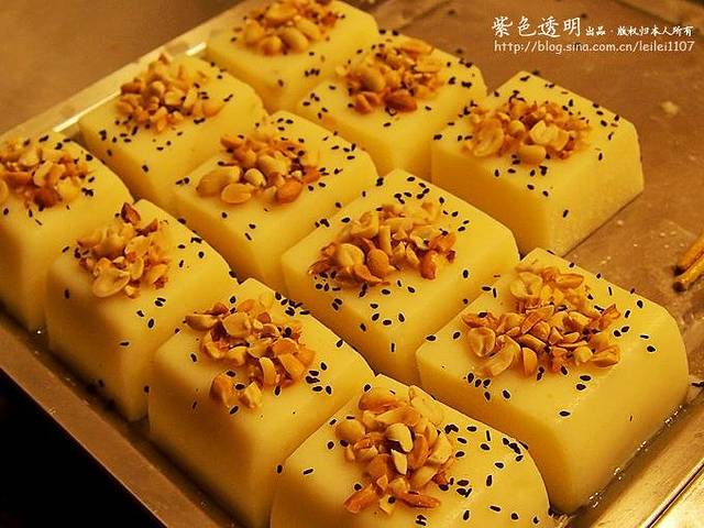 这个也是凉糕,是甜口的,上面点缀的是花生碎。上一张图片是咸口麻辣滴。