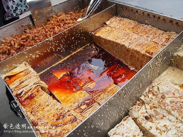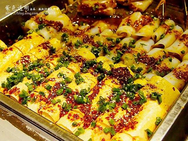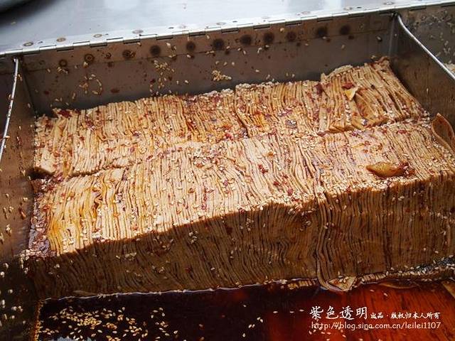 在巷子口遇到的买豆皮的移动小贩,豆皮做的那是相当可口诱人哇。有辣的还有不辣的。
