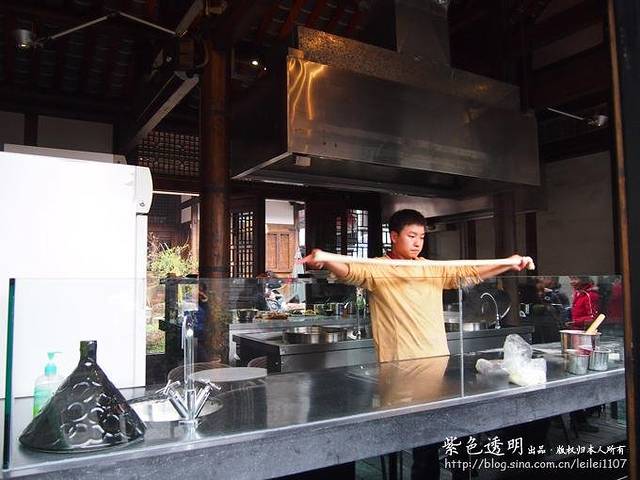 开放式超大厨房,一位年轻人在表演兼拉面。