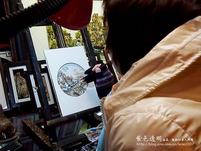 这位摊主,再用西毛笔绘画,然后装裱后直接出售,很有文艺范哈。