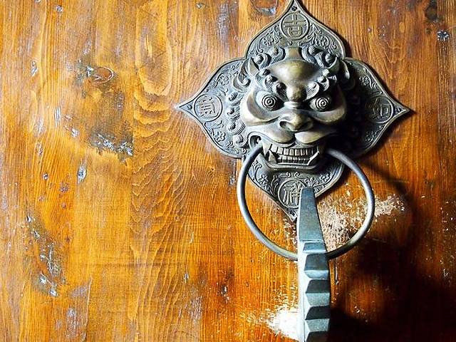 博物馆的展馆大门,展馆内较黑,室外的阳光射在门上,特有拍照的欲望。